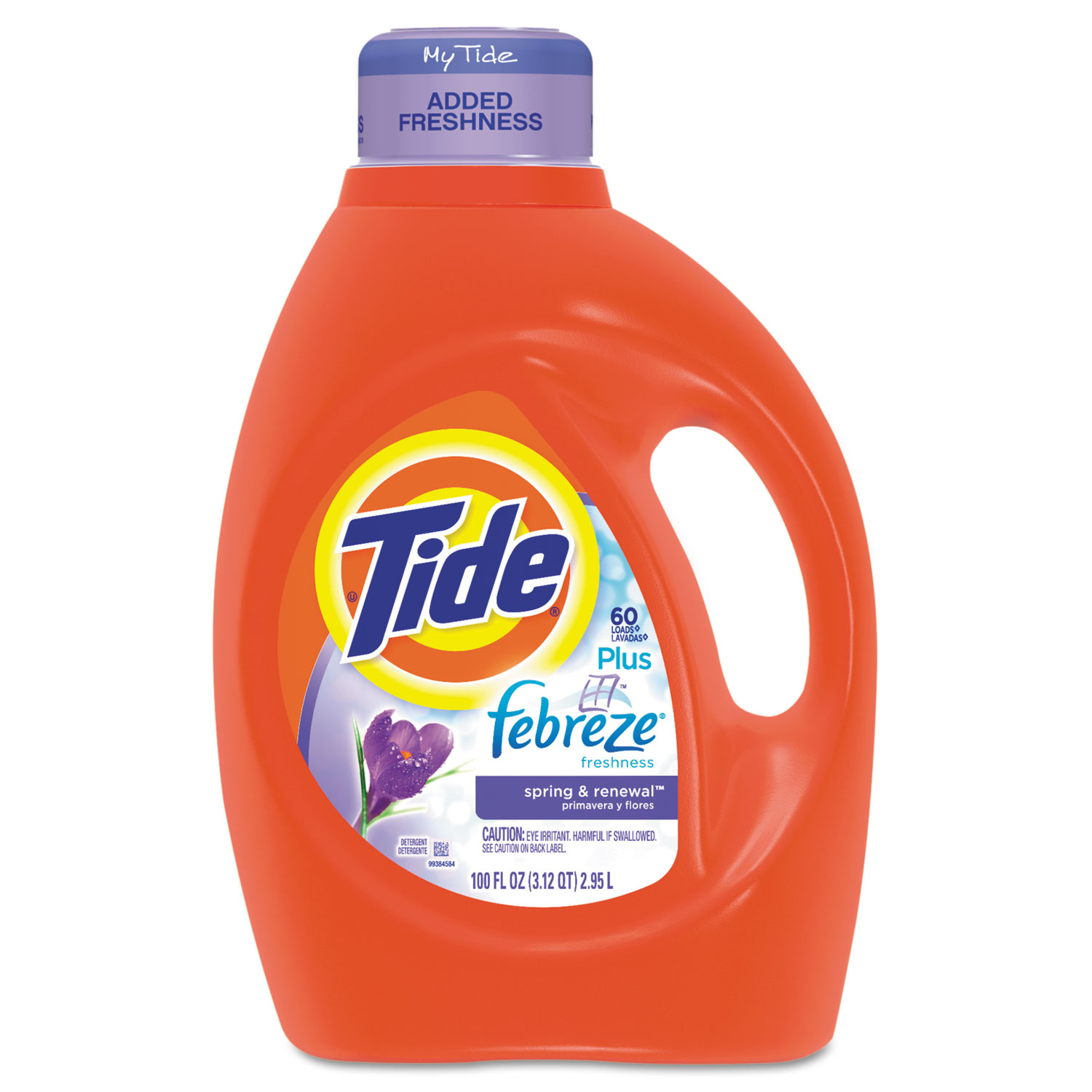 Plus Febreze Liquid Laundry Detergent, Spring & Renewal, 100oz Bottle, 4/ct