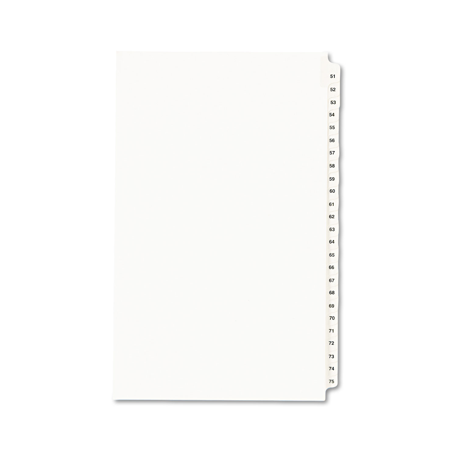 Avery-Style Legal Exhibit Side Tab Divider, Title: 51-75, 14 X 8 1/2, White