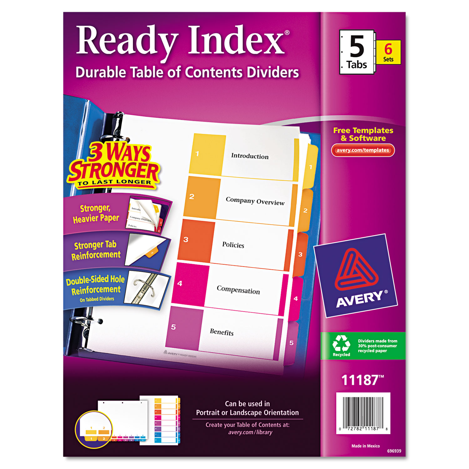 Ready Index Customizable Table Of Contents, Asst Dividers, 5-Tab, Ltr, 6 Sets