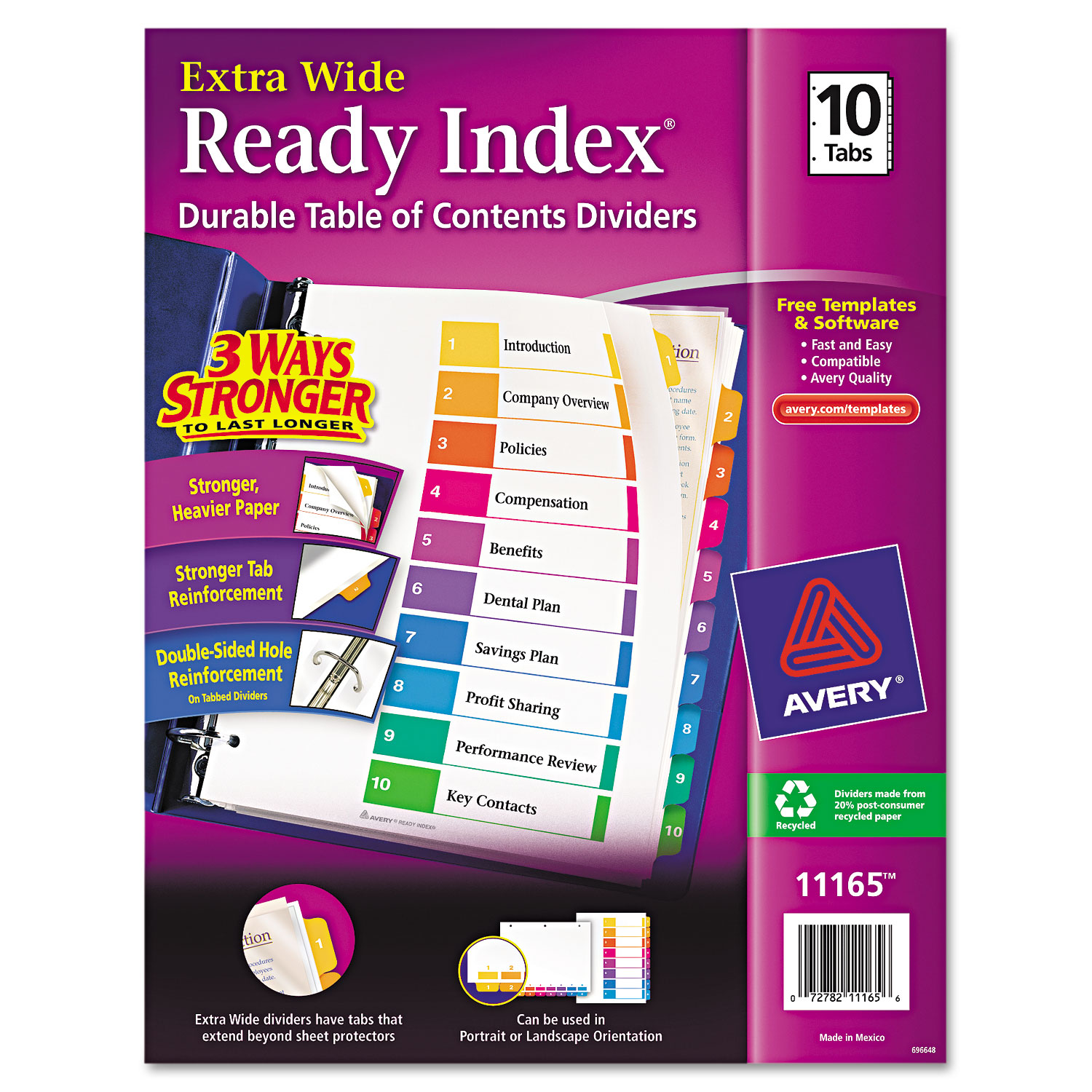 Ready Index Customizable Table Of Contents, Asst Dividers, 10-Tab, 11 X 9 1/2