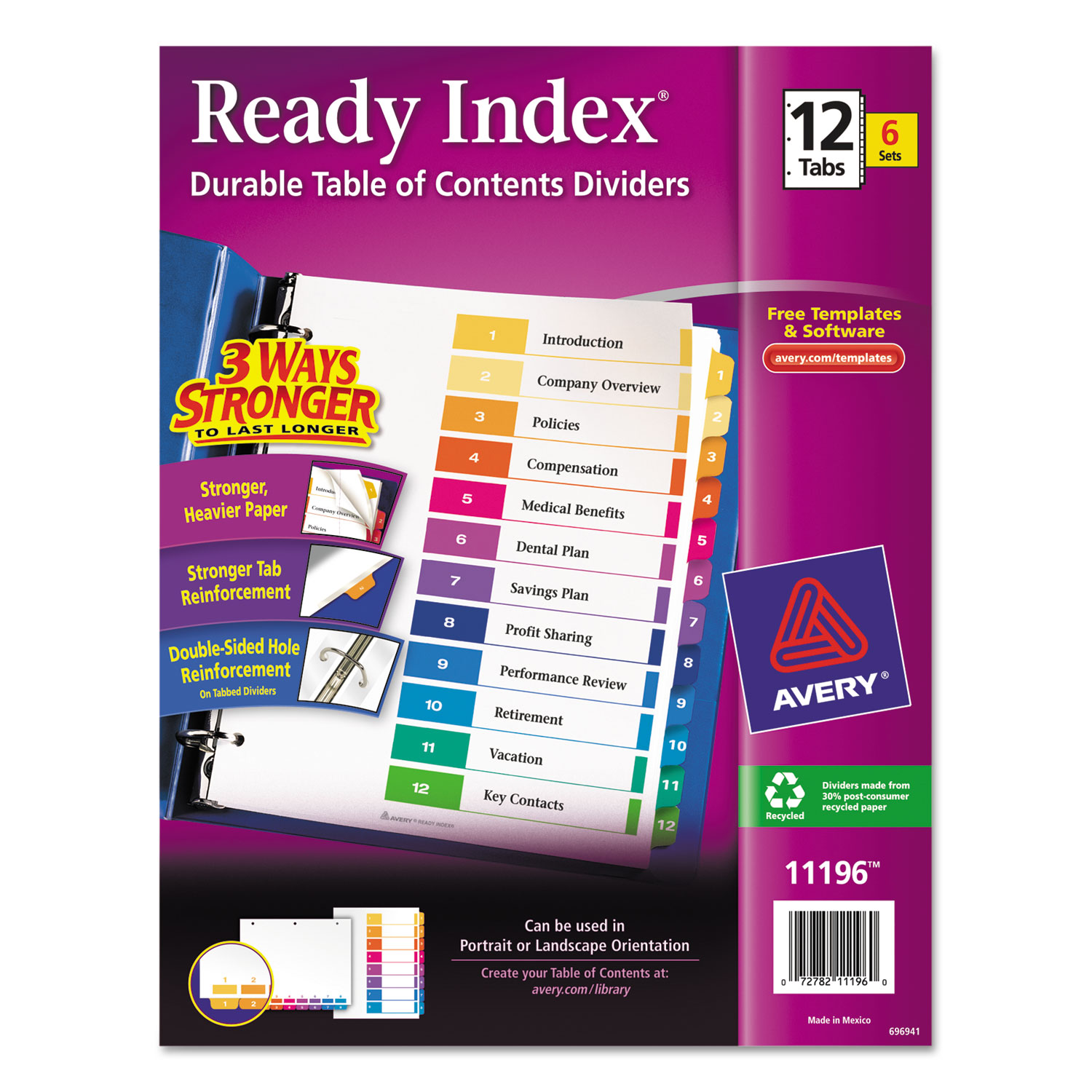 Ready Index Customizable Table Of Contents, Asst Dividers, 12-Tab, Ltr, 6 Sets