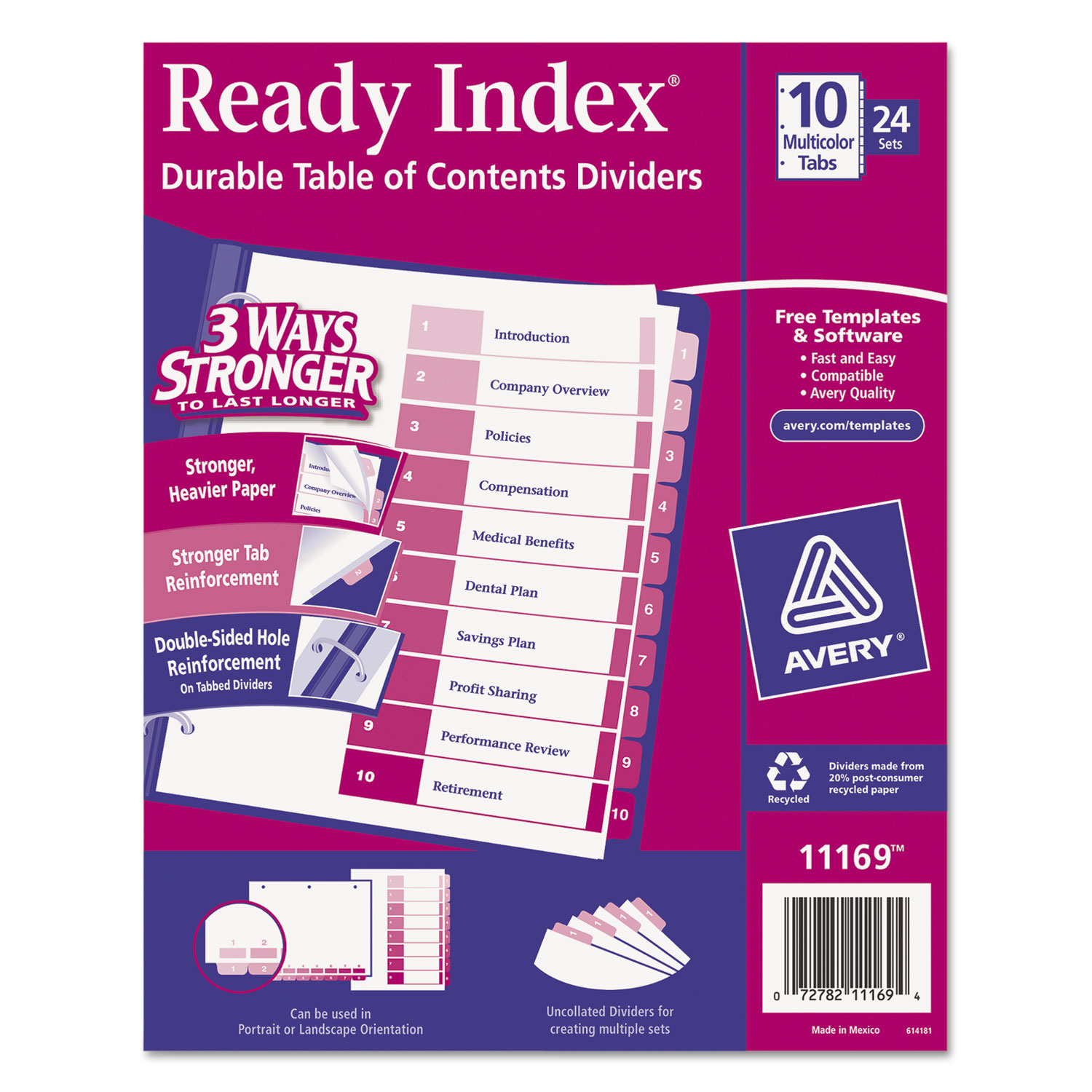 Ready Index Customizable Table Of Contents Asst Dividers, 10-Tab, Ltr, 24 Sets
