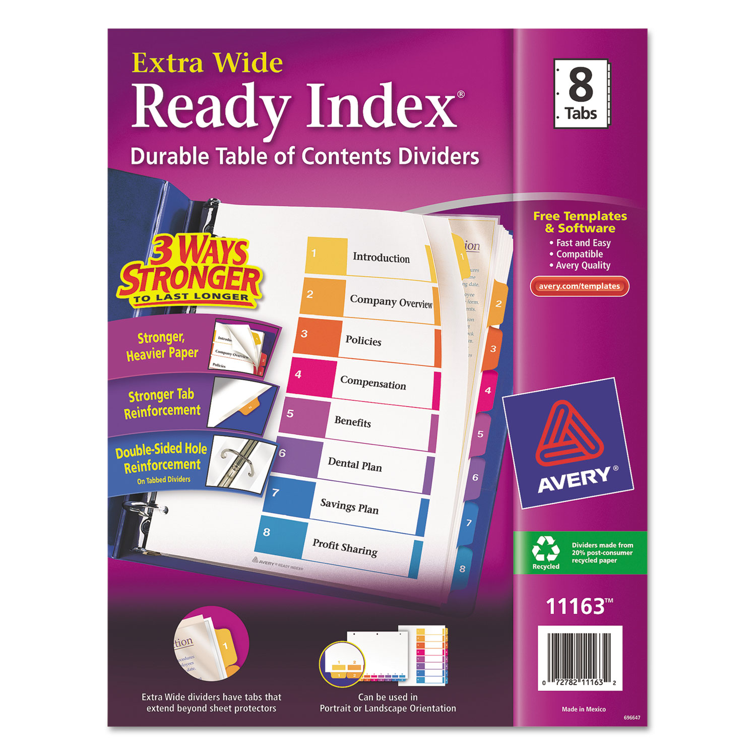 Ready Index Customizable Table Of Contents Asst Dividers, 8-Tab, Ltr, 24 Sets