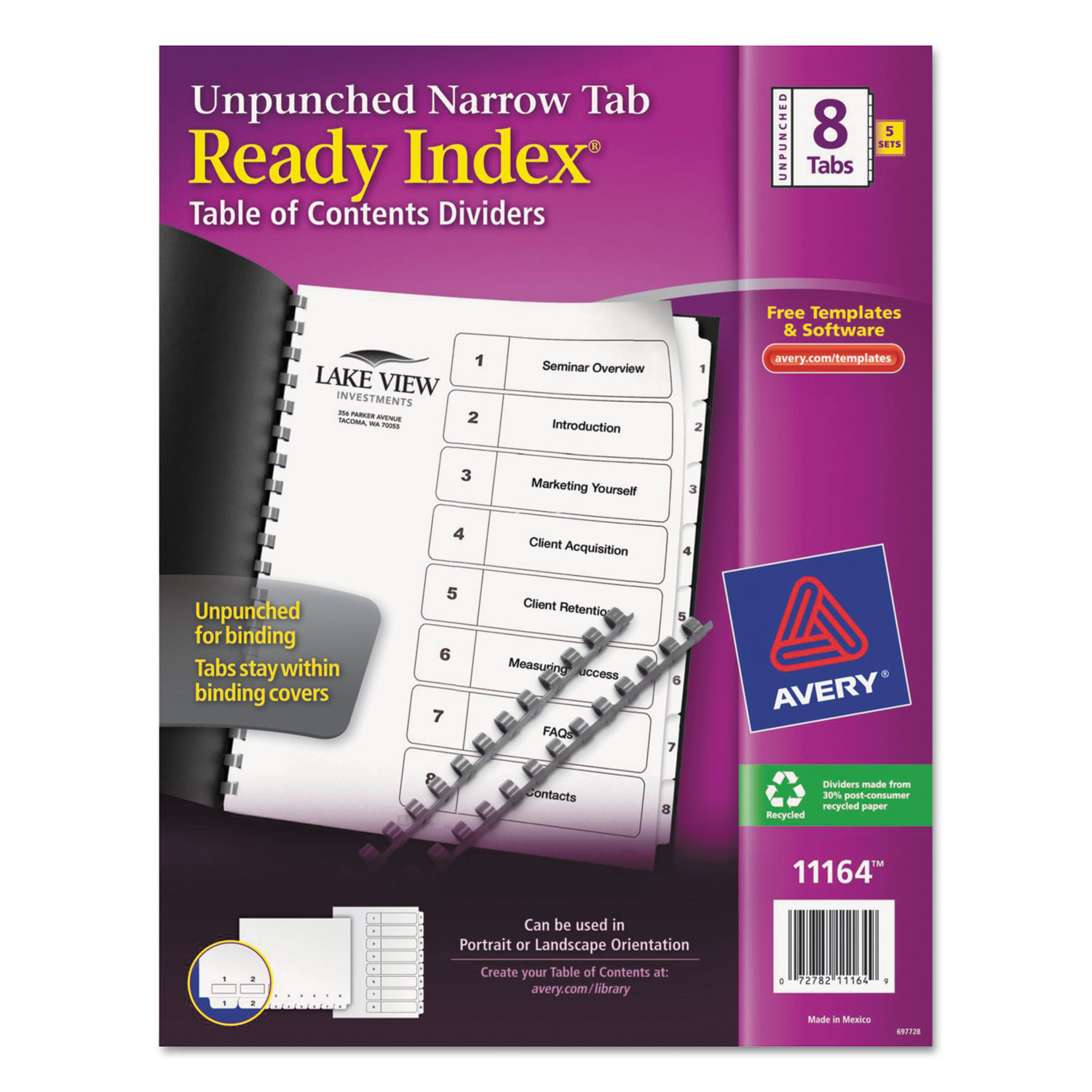 Ready Index Customizable Table Of Contents, Unpunched, 8-Tab, Ltr, 5 Sets