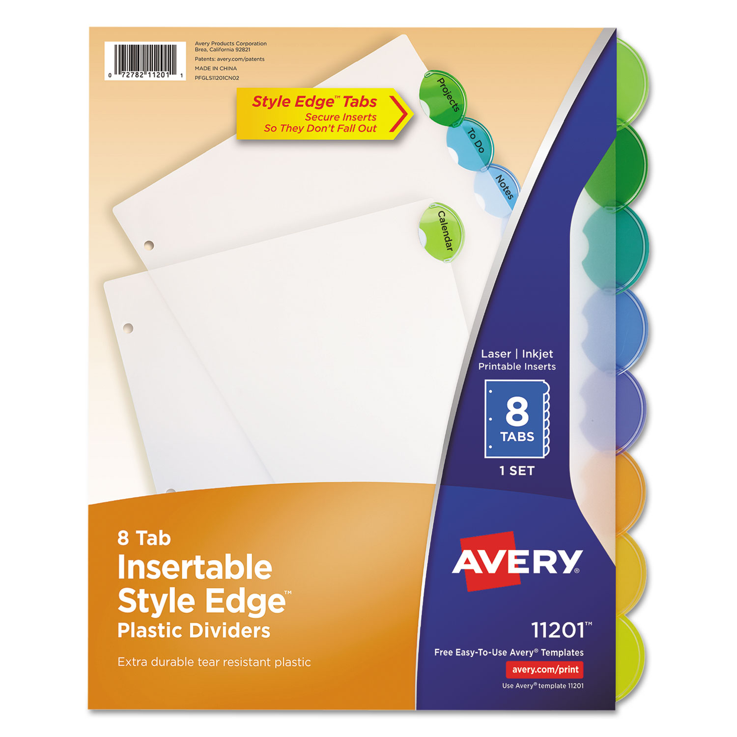Insertable Style Edge Tab Plastic Dividers, 8-Tab, Letter