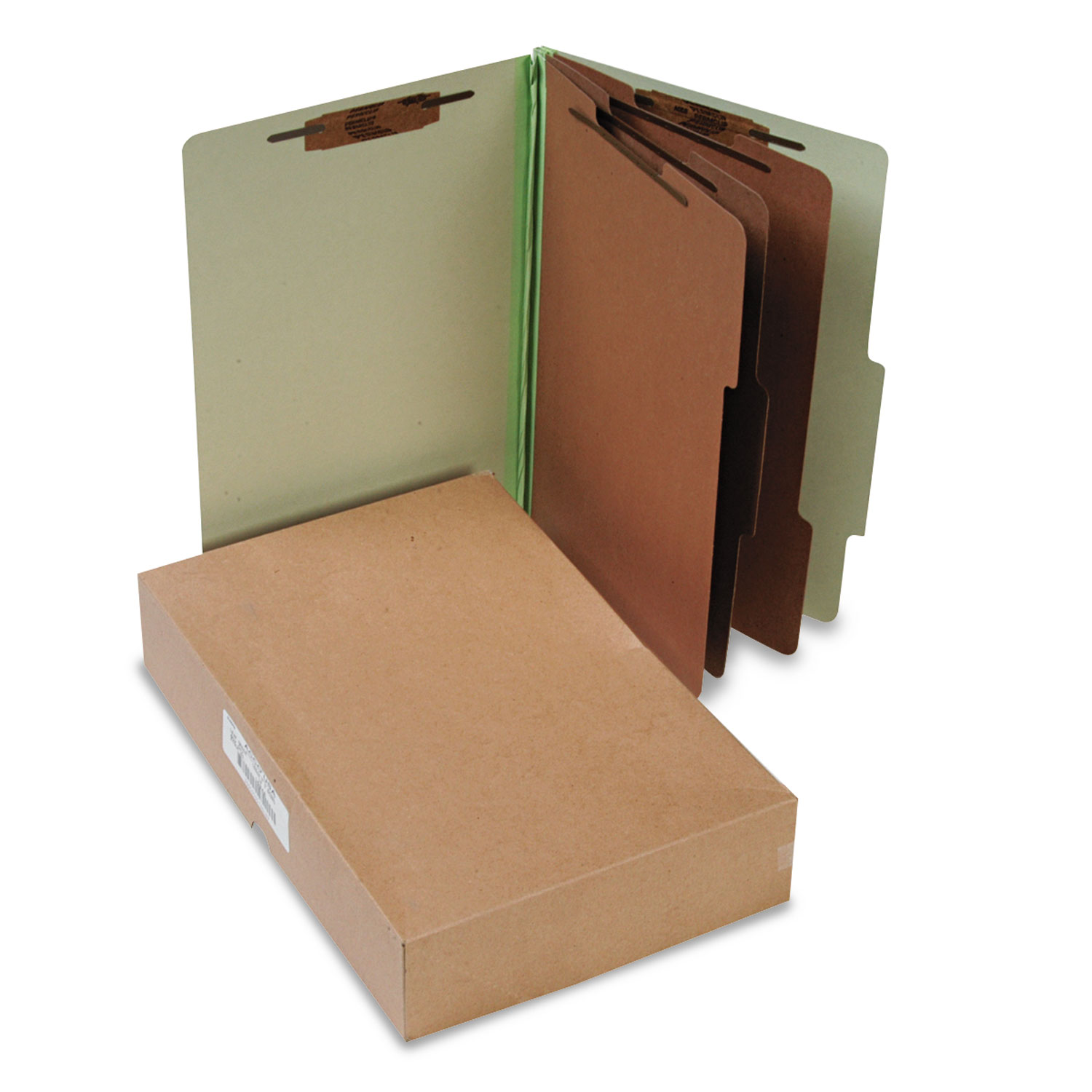 Six-Section Pressboard Folders, Letter, 2/5 Tab, Green, 10/box