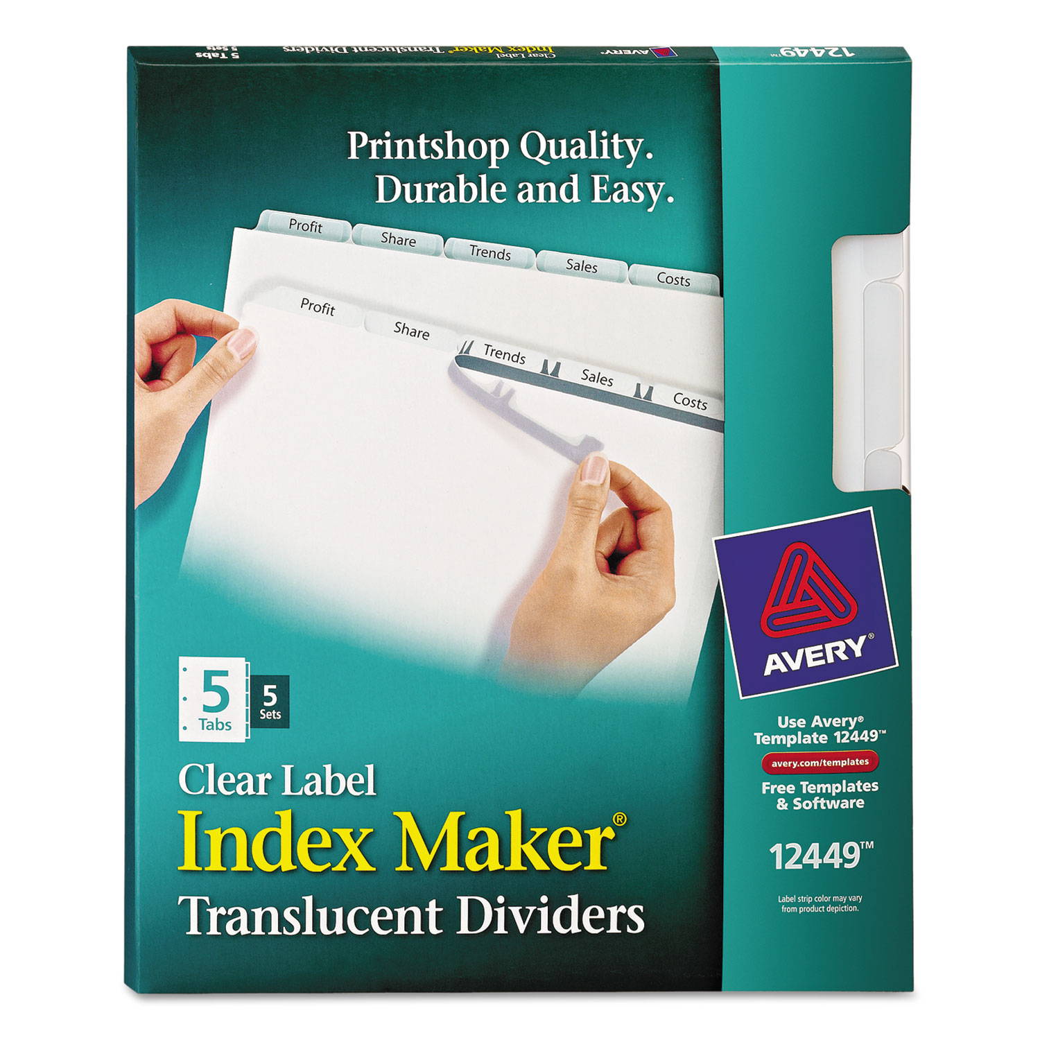 Index Maker Print & Apply Clear Label Plastic Dividers, 5-Tab, Letter, 5 Sets