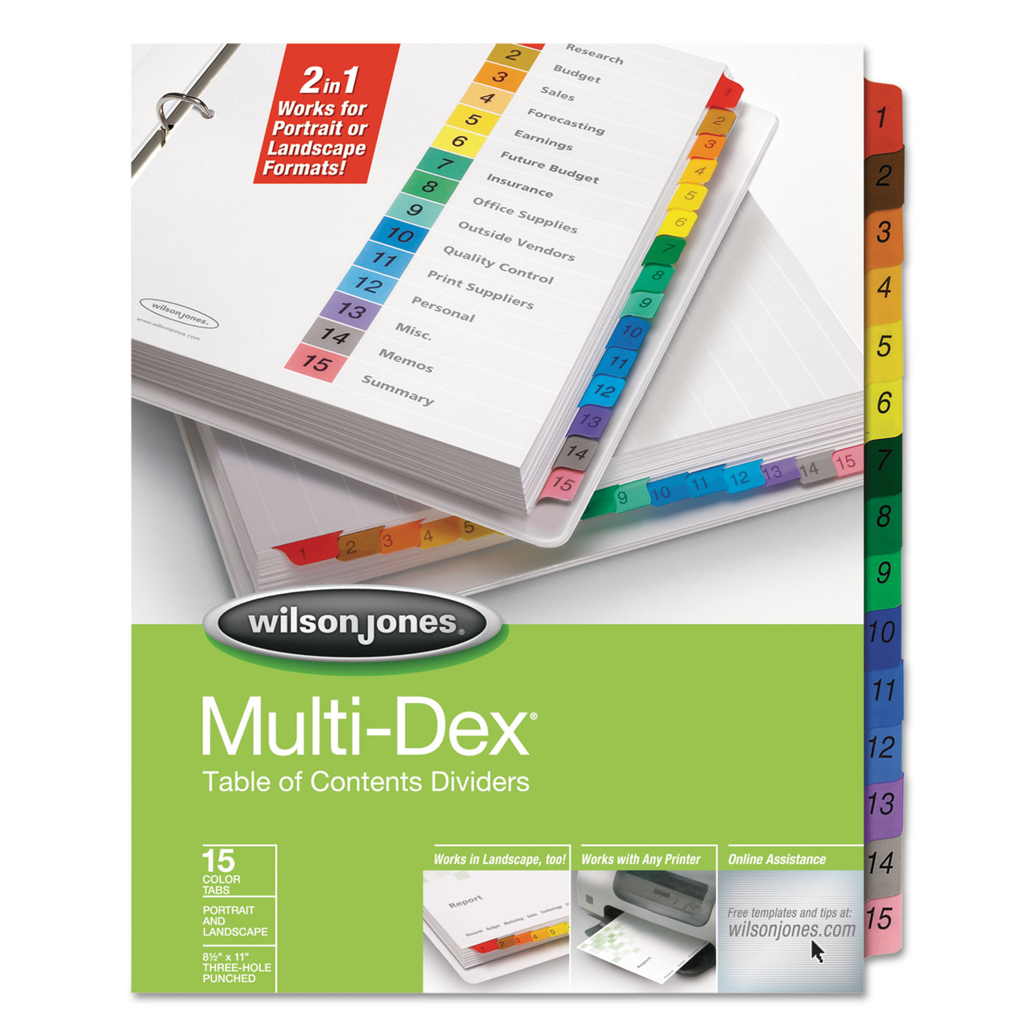 Multi-Dex Index Assorted Color 15-Tab, Labeled 1-15, Letter