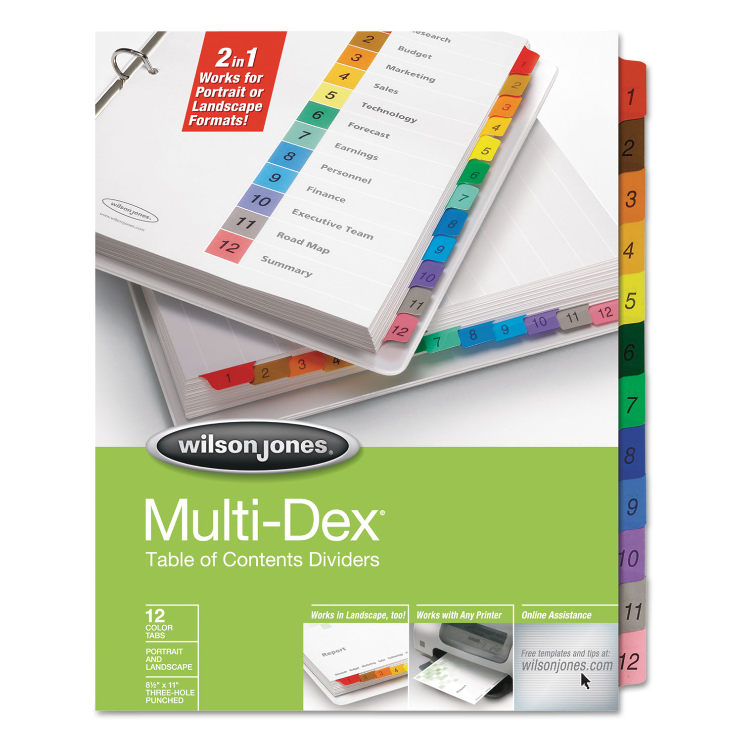Multi-Dex Index Assorted Color 12-Tab, Labeled 1-12, Letter